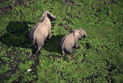Фотография Африканские слоны, болота реки Замбези в Мозамбике. Принт для оформления дизайна интерьеров. выбрать материал для печати и оформления постера или фотографии. Цена указана за метр квадратный.