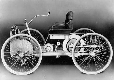 Черно-белое фото первого старого четырехколесного авто