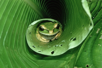 Предлагаем Вам постер животного мира зеленая лягушка в домике из зеленого листика купить и красиво оформить для интерьера в Минске. Изображение высокого разрешения. Интерьерная широкоформатная печать для оформления помещений. выбрать материал для печати постеров и картин Цена указана за метр квадратный.