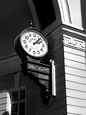 Точное время черно-белые часы в черно-белом городе