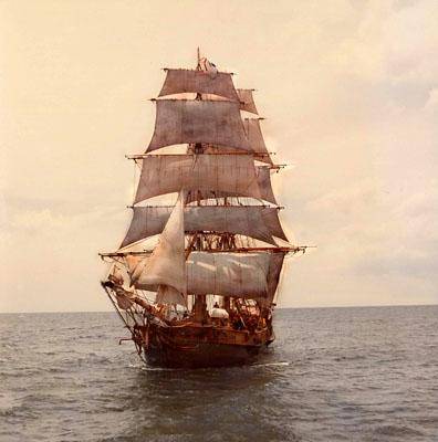 Корабль под парусами в спокойном море. Широкоформатная, интерьерная печать для оформления дизайна помещения. выбрать материал для печати обоев и фресок. Цена указана за метр квадратный.
